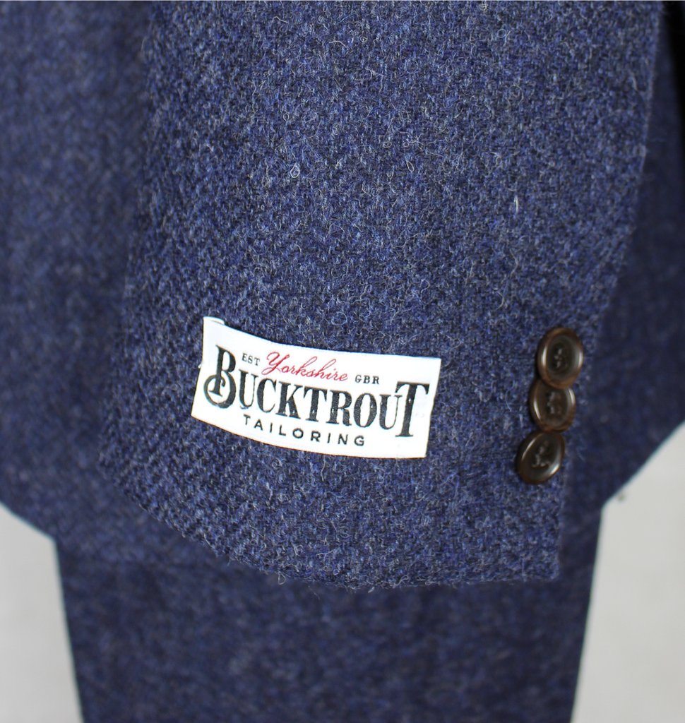 Bucktrout Tailoring Patrick Blue irtotakkien valmistamiseen on käytetty harvinaista yorkshireläistä tweedkangasta. Sitä valmistetaan Englannissa 100 % villasta, kangas on kauniin näköinen, kestävä ja sillä on erinomaisen hyvät lämmöneristysominaisuudet. Patrick Blue -takin vuori on tehty viskoosista ja asetaatista ja on koristeltu omaperäisellä kullanvärisellä paisley-kuvioinnilla. Takin muita erikoispiirteitä ovat värikontrastin luovat kyynärpaikat ja pieni ylimääräinen tasku, joka on tarkoitettu lipun säilyttämiseen (ticket pocket). Irtotakissa on myös kolme tavallista ulkotaskua.