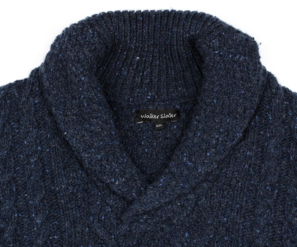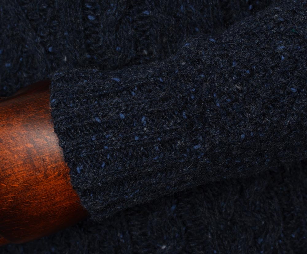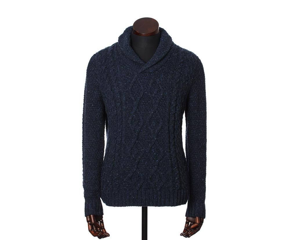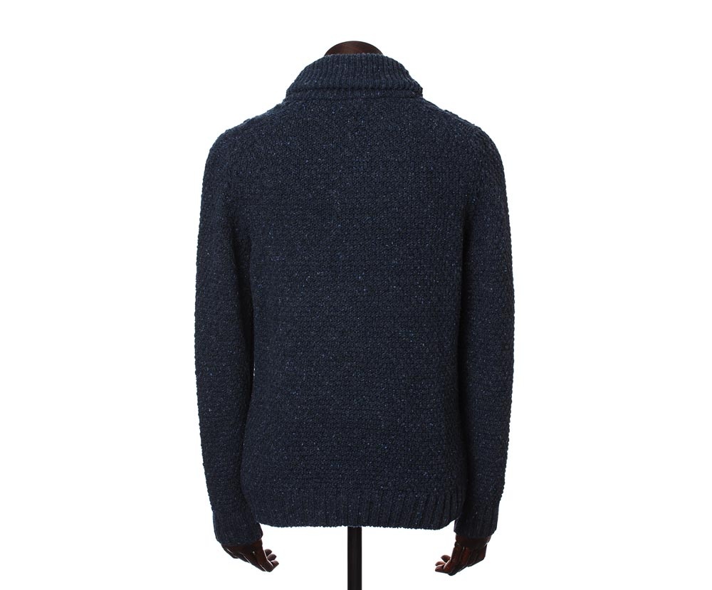 Classic knitted shawl collar pullover Dougal Jumper Midnight will warm you even in freezing temperatures.