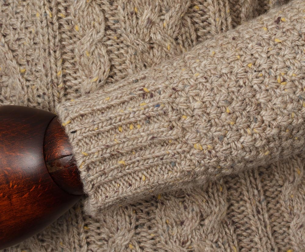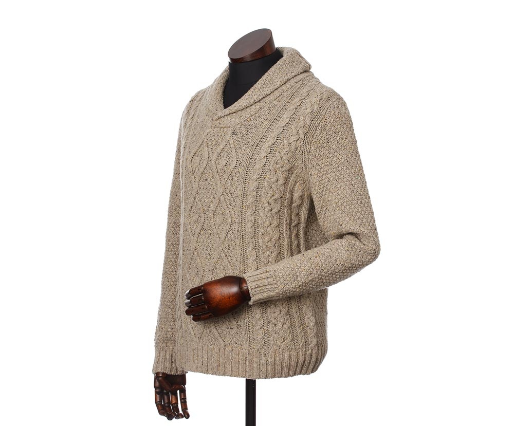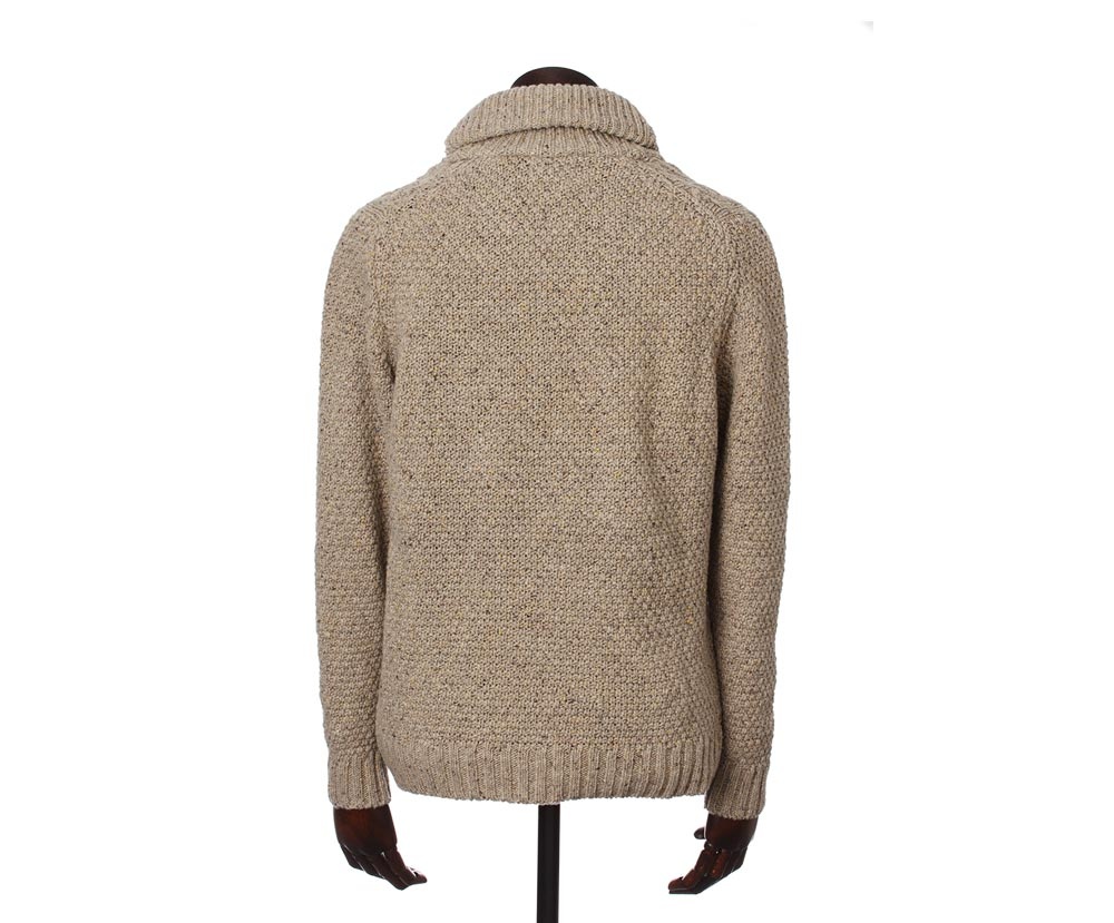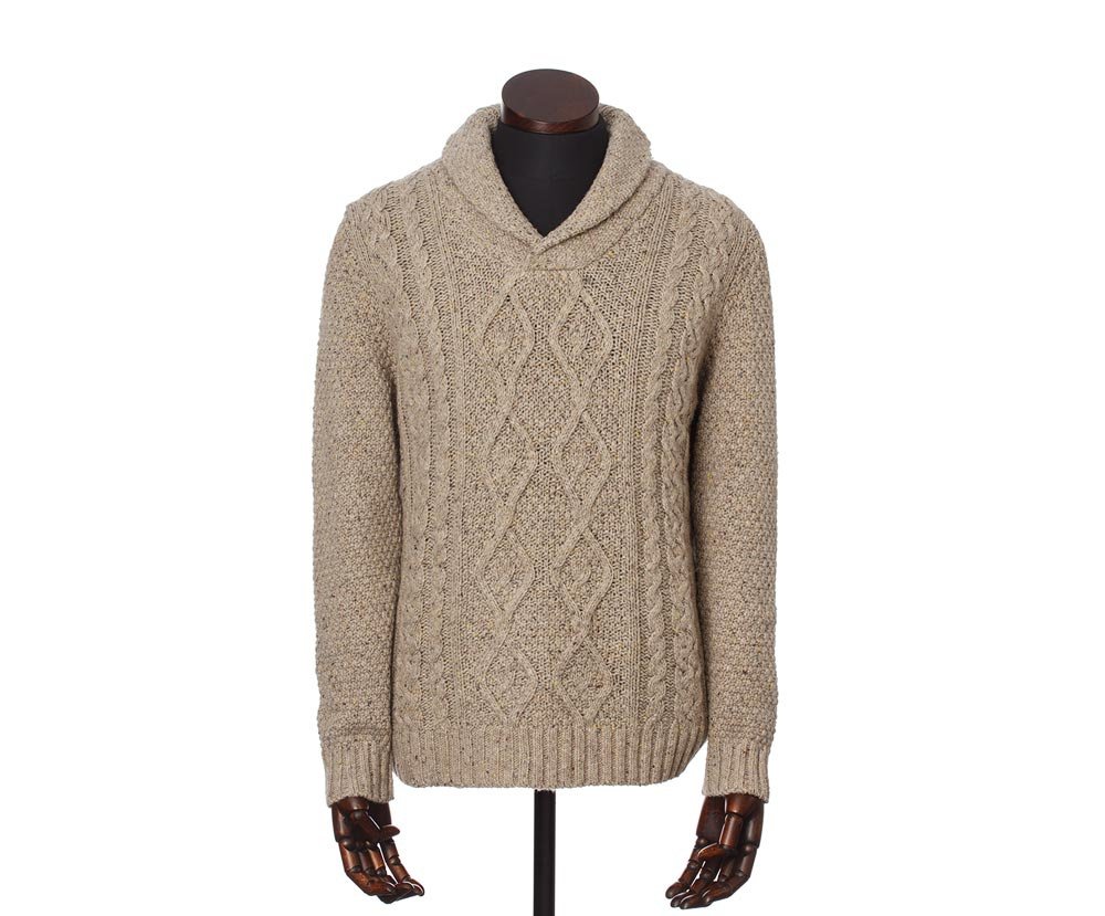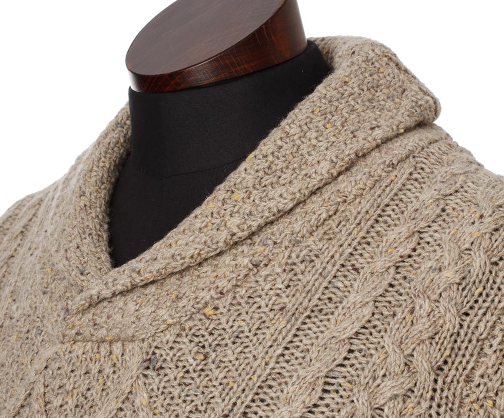 Classic knitted shawl collar pullover Dougal Jumper Oatmeal will warm you even in freezing temperatures.