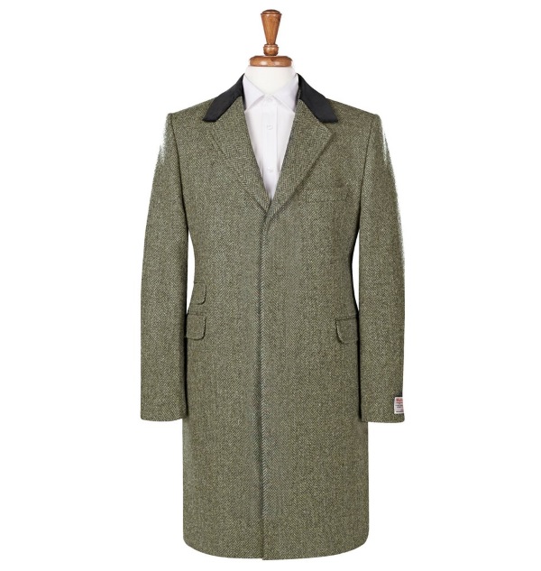Light olive tweed gives Chelsea Lovat coat frankly informal look. However, owing to hidden closure, elegant fitted cut and velvet collar this coat looks quite strict and even aristocratic. It is suitable for walks, trips, restaurants, bars, exhibitions or theatres. Moreover, this coat can be worn to the office if you don’t need to wear extremely formal clothes.