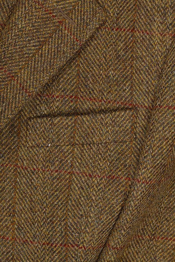 Murdo Mustard Overcoat is a classic coat made of mustard-brown tweed with large red check. It is quite warm, but not too heavy. This tweed coat is perfect for both short and long walks through the city, parks and countryside. It is suitable for outdoor events and for everyday wear, unless you need to wear only formal business suits of smooth fabrics.