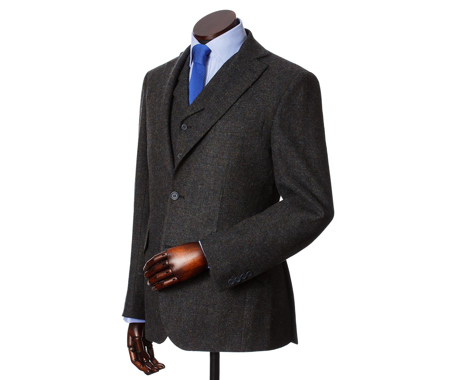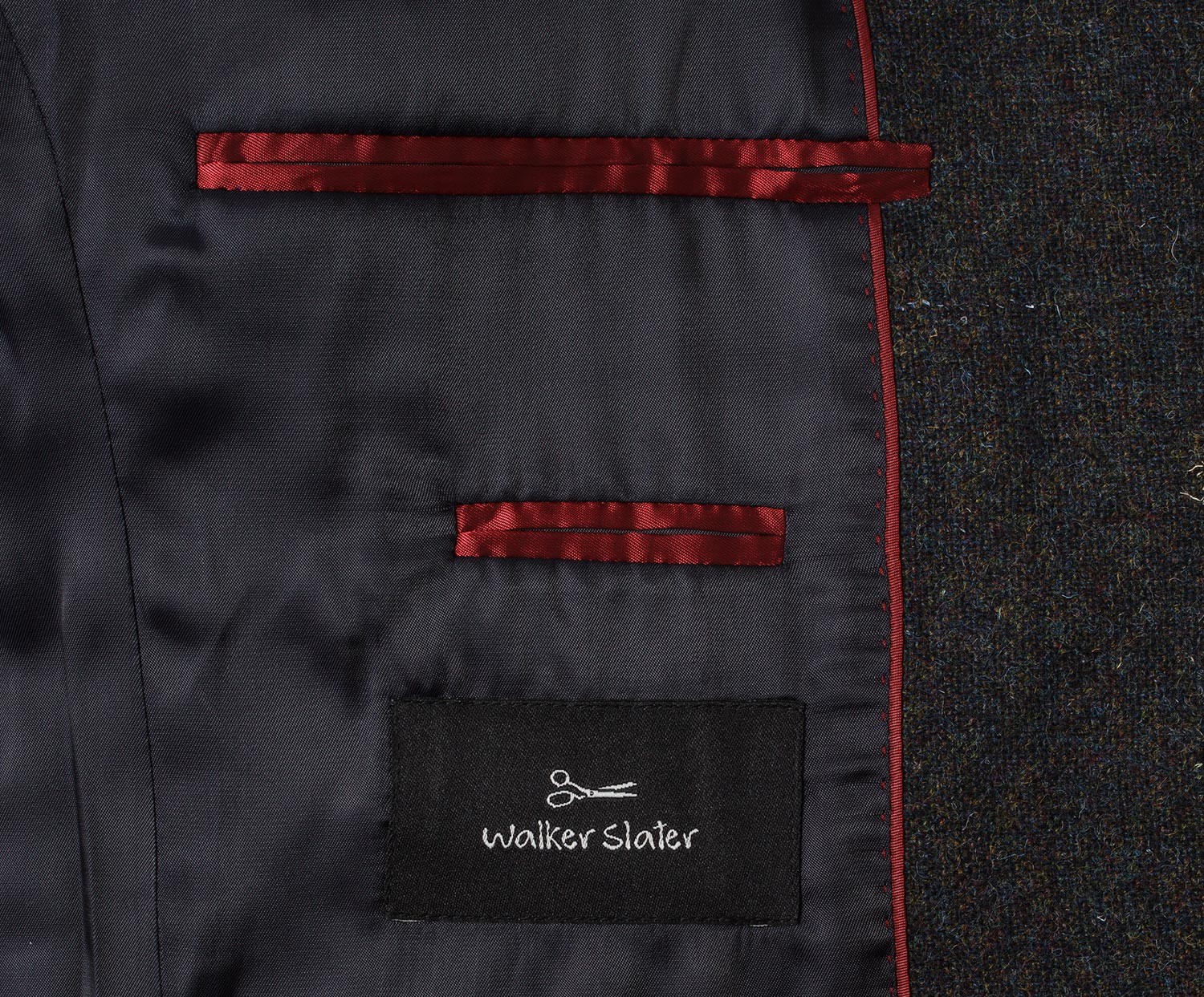 Tweed van Shetland schapenwol, waarvan Edward Navy is gemaakt, staat bekend om zijn aristocratisch uiterlijk en duurzaamheid; verder voelt het heel lekker aan. De voering van 100% viscose is uiterst comfortabel omdat ze ademend is. De kleermakers van Walker Slater zijn bovendien de esthetiek niet vergeten: de biesbanden van de binnenzakken en de kanten van de voering van Edward Navy zijn zorgvuldig gedecoreerd en de buitenzakken zijn mooi geschuind.