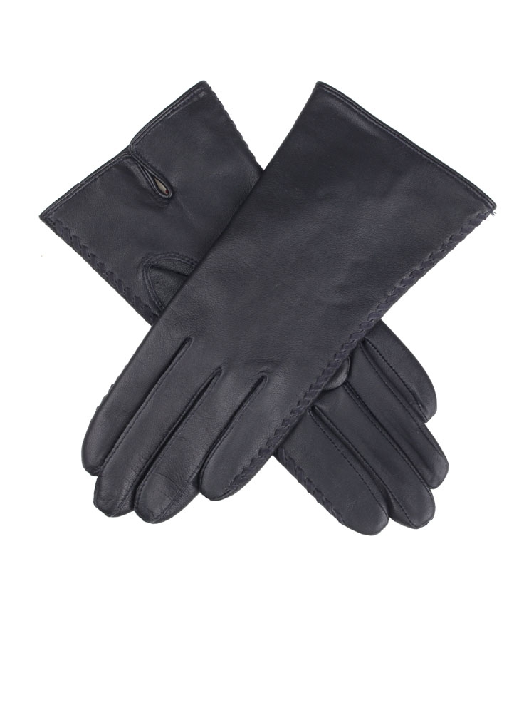 Women's Hairsheep Leather Gloves with Kidsuede Whip Stitch Detail Lily Navy