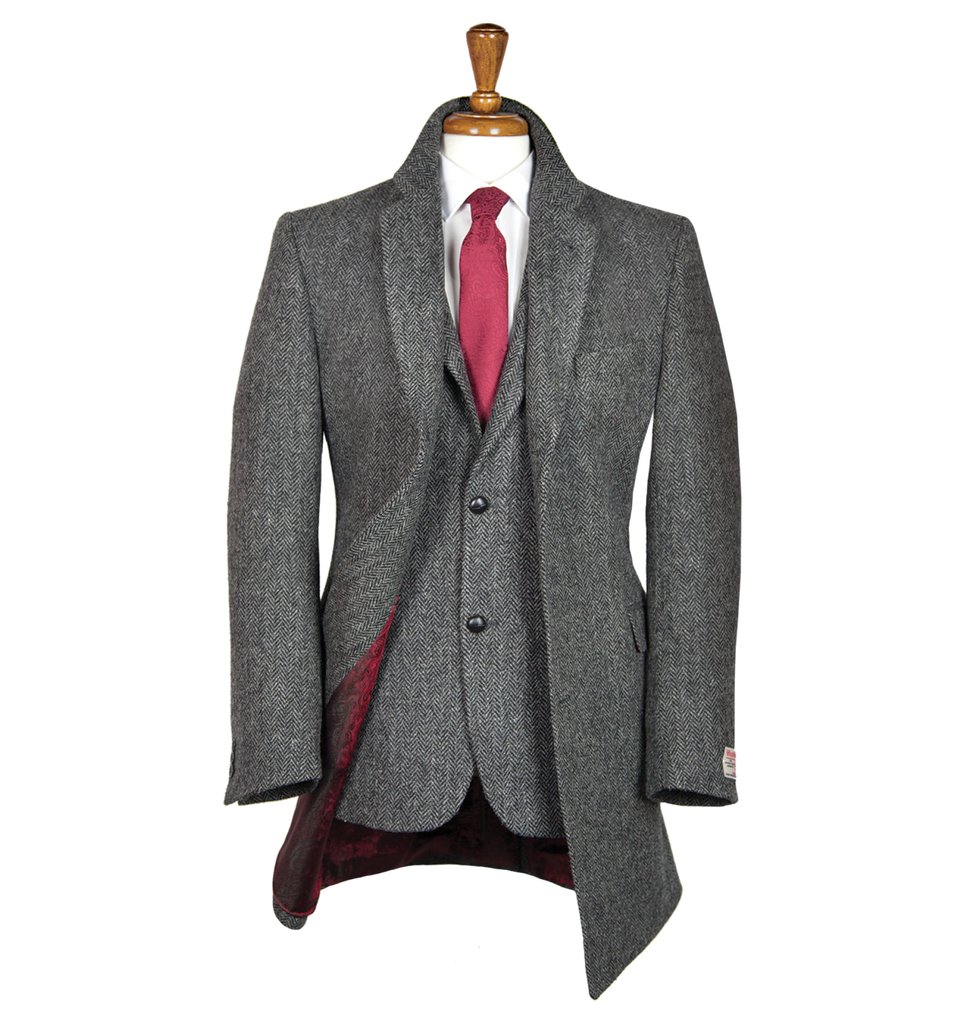 Aller aux détails. Le manteau Murdo Charcoal est fabriqué à partir de tweed écossais tissé à la main, appelé Harris Tweed. Au toucher, il est plutôt rugueux, mais très résistant à l'usure et chaud. La doublure du manteau est composée d'un mélange d'acétate et de viscose. Elle est peinte dans une couleur vive et présente un motif paisley plutôt rare. Le coup de ce manteau est assez moderne et ajusté. Murdo Charcoal est boutonné avec trois boutons.